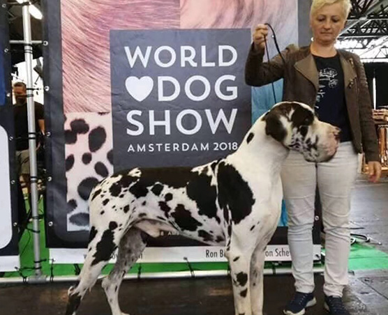 大丹犬(丹麥——布達(dá)佩斯)布達(dá)佩斯的******犬展,沒有留在現(xiàn)場(chǎng)觀看,但是后來跟犬主聊天,他的寶寶全場(chǎng)******,為你鼓掌。